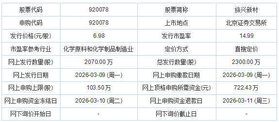 长沙祖发起人(主要负责人) 相关产品属于新材料行业有色金属功能粉体材料。截至招股说明书签署日,梁晓斌先生持有公司股份50,577,500股,占公司总股本的52.14%,为公司第一大股东。同时,梁晓斌先生近两年担任公司总裁兼首席执行官。彼负责公司重大管理决策及关键管理人员聘任,对公司经营能力产生重大影响。梁晓斌先生的配偶及直系亲属不直接或间接持有本公司股份,也不担任本公司董事、高级管理人员,在本公司管理决策中不发挥重大作用,因此无需认定实际共同控制人。总之,梁晓斌先生就是公司控股股东、实际控制人。祖兴新材2026年3月5日发布的招股书显示,公司拟募集资金20810.61万元,用于年产5000吨高纯微球铝粉生产建设项目、年产1000吨粉末涂料用高性能铝颜料生产建设项目、高性能铝银浆技改项目。族兴新材于2026年3月5日发布公告,拟向不特定合格投资者公开发行股票,并在北京证券交易所挂牌上市。公告称,若发行成功,公司预计募集资金总额16054万元。预计扣除发行费用2415.28万元(不含增值税)后净利润为13638.72万元。